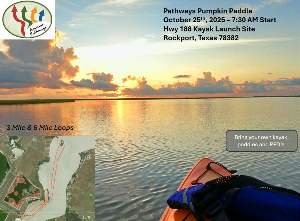 Pathways Pumpkin Paddle October 25th at 7:30 AM Join us for a magical sunrise kayaking adventure at the Hwy 188 Kayak site on Port Bay! Experience the beauty of autumn from the water as you paddle through the crisp morning air with fellow outdoor enthusiasts. Choose your distance – either a leisurely 3-mile route or challenge yourself with the 6-mile paddle. Watch the sun rise over the water while surrounded by fall colors and seasonal charm. After your paddle, warm up with delicious refreshments and connect with other adventurers. Whether you’re a seasoned paddler or new to kayaking, this event promises lots of fun and unforgettable memories. Bring your own kayak and your sense of adventure for a perfect fall morning on the water! Register here: https://aransaspathways.com/pumpkin-paddle-registration/ Location: Hwy 188 Kayak site, Port Bay
